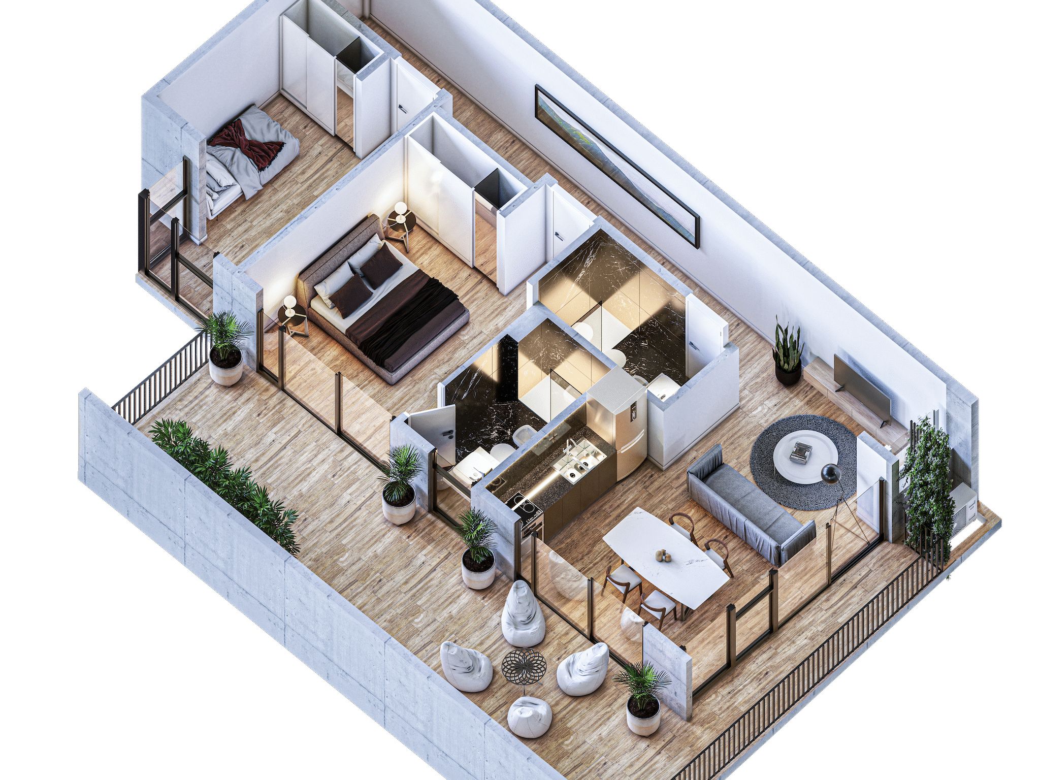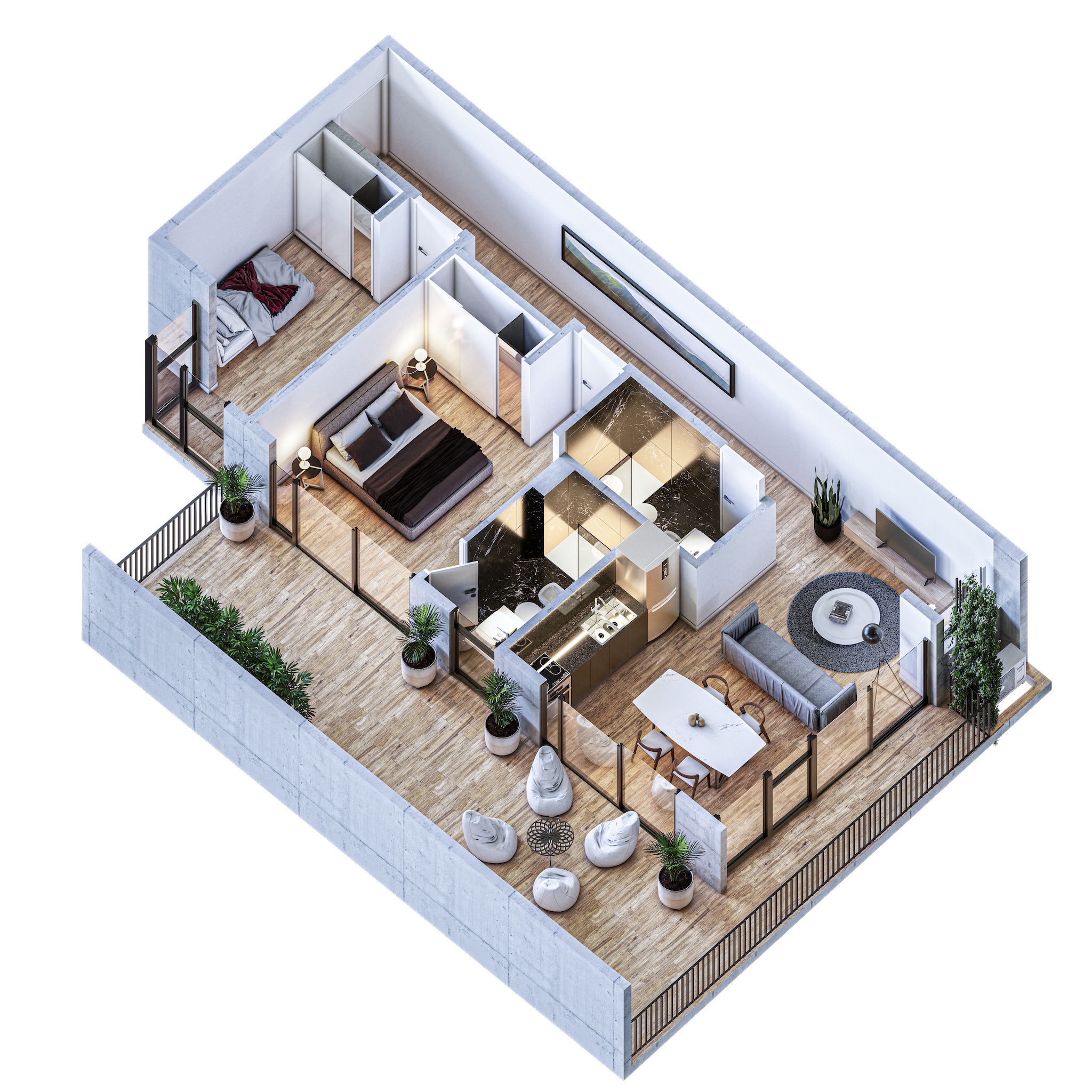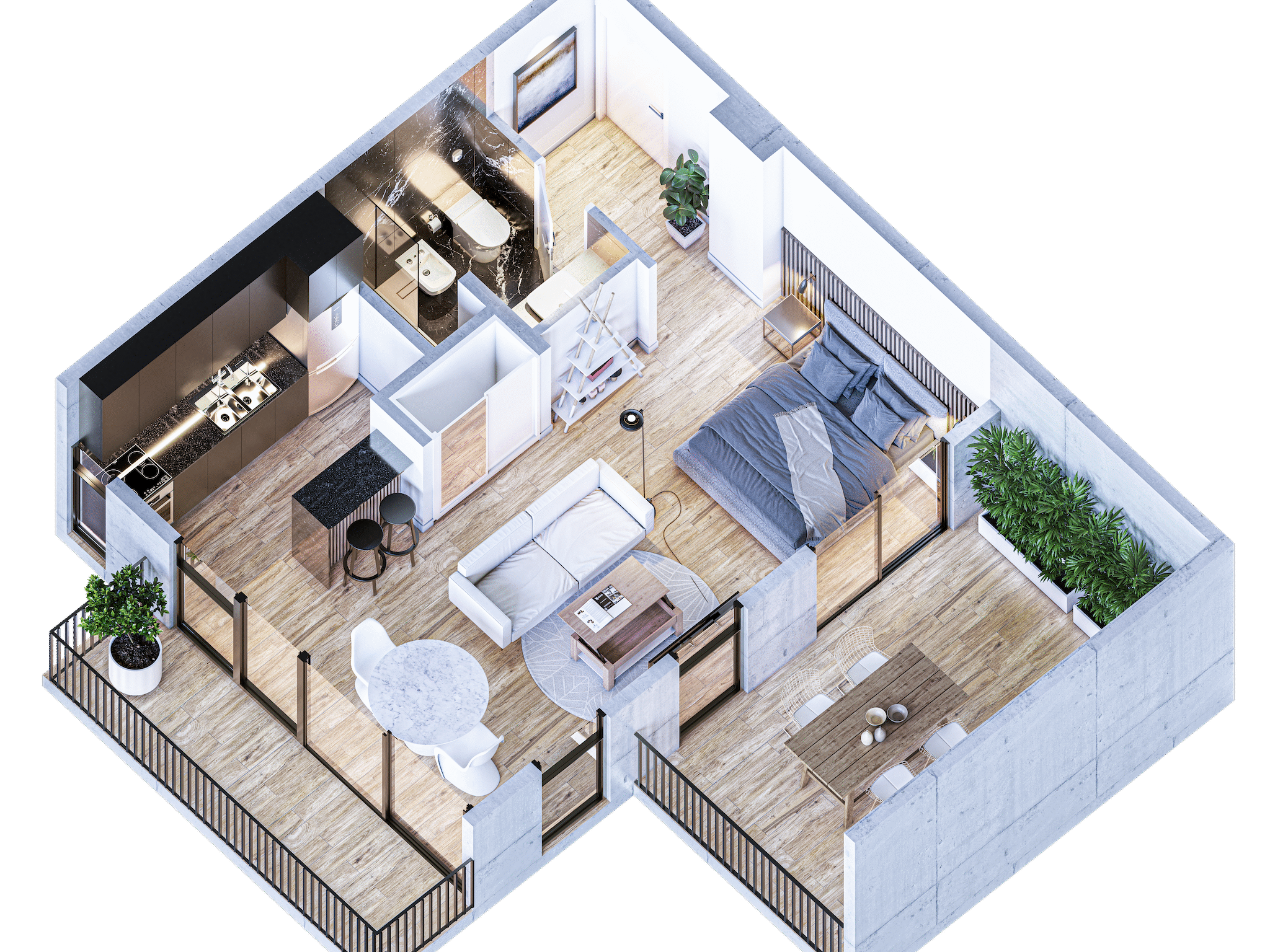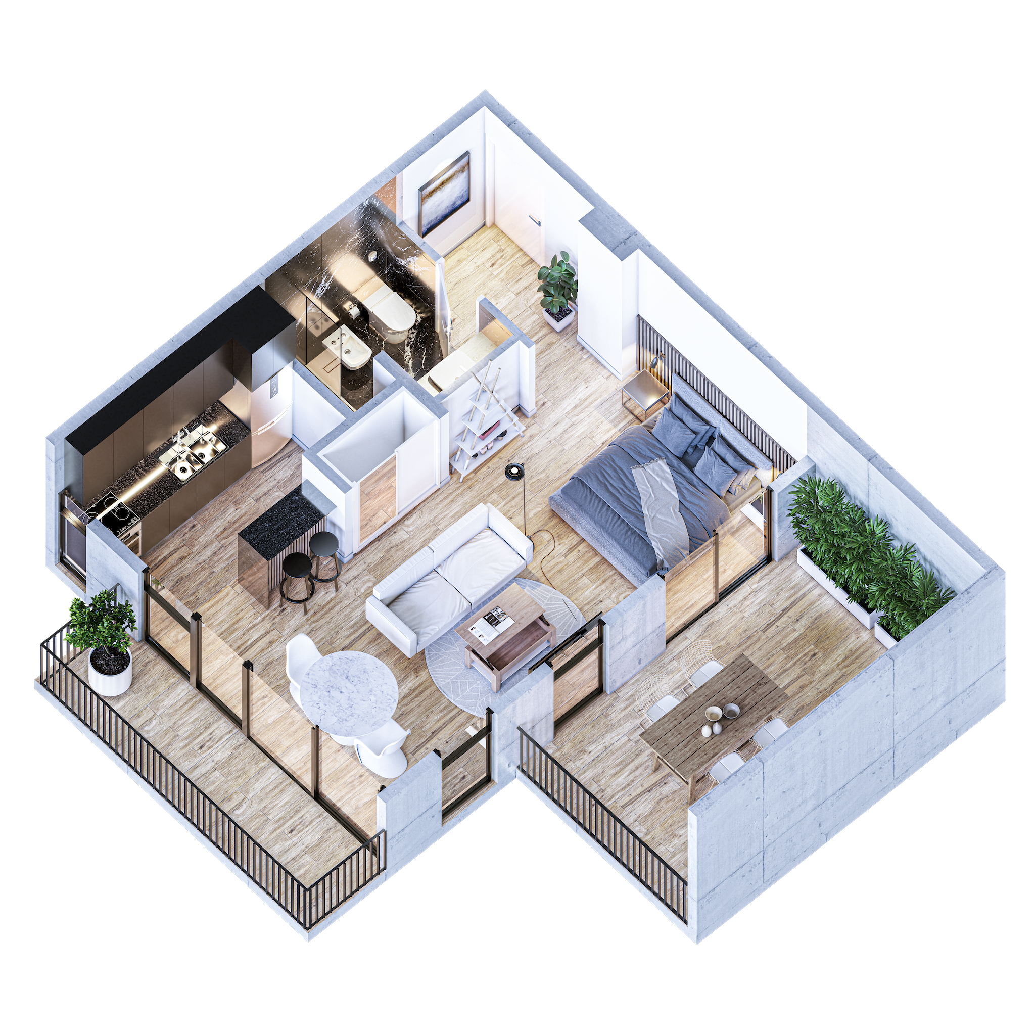 • Amplios balcones o espacios exteriores